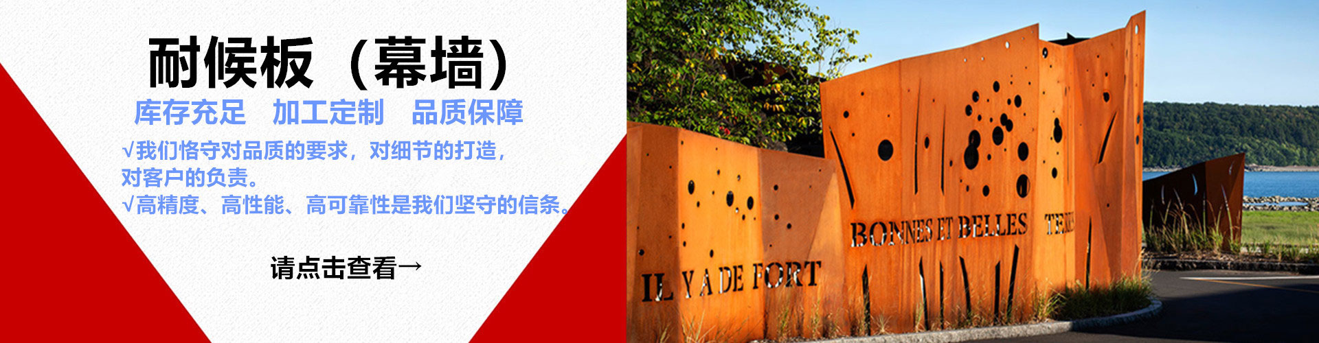 山東沃卡金屬制品有限公司提供耐候板深加工,如雕花、鏤空、刻花、折彎等。還有耐候板的園林景觀裝飾加工,如銹鋼板、紅銹鋼板等。鐵紅色銹蝕鋼板(即紅色幕墻鋼板,景觀鋼板,雕刻鋼板)是介于普通鋼和不銹鋼之間的價廉物美的合金鋼系列,在融入現代冶金新機制、新技術和新工藝后得以可持續發展和創新,屬世界超級鋼技術前沿水平的系列鋼種之一。鐵藝紅幕墻鋼板由普碳鋼添加少量銅、鎳等耐腐蝕元素而成,具有優質鋼的強韌、塑延、成型、焊割、磨蝕、高溫、疲勞等特性;耐候性為普碳鋼的2~8倍,涂裝性為普碳鋼的1.5~10倍,能減 薄使用、裸露使用或簡化涂裝使用。該鋼種具有耐銹,使構件抗腐蝕延壽、減薄降耗,省工節能的特性,使構件制造者、使用者…